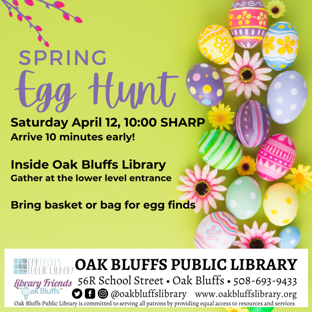 Join us to hunt for eggs hidden around the library on Saturday 4/12. Hunt is divided by age group: 0-2, 3-5, and 6-11 years. Bring a basket or bag. We will meet at the lower level entrance, please arrive about 10 minutes early- Hunt is at 10am SHARP!