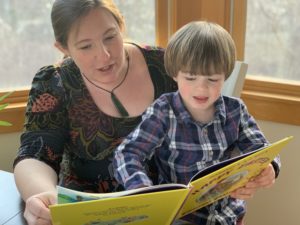 - Reference Librarian, Nina Ferry, reading to her son Oliver, while working from home during Covid-19