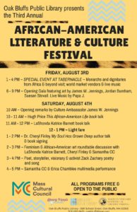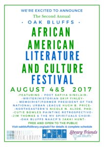 In 2016, the Oak Bluffs Public Library celebrated the first week of August with an African American Literature and Culture Festival in honor of the Oak Bluffs Power of Place permanent exhibit in the The Smithsonian’s National Museum of African American History and Culture in Washington, D.C. The next year, the library received a sizable donation of African American research resources from a local scholar, which soon became part of our African American collection.