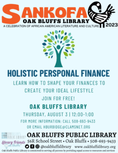 African American Heritage Trail : Special Library Tour Saturday, August 5 11:00 – 12:00pm In celebration of the Sankofa Festival for African American history and culture, the OB Library and the Library Friends of Oak Bluffs have arranged for a fully narrated walking tour of the Highlands Area of Oak Bluffs with the African American Heritage Trail of Martha’s Vineyard. Space is very limited for this free tour, so registration is required. Please call (508) 693-9433 and ask for Hannah, or email hburbidge@clamsnet.org to register. To ensure the maximum community access to this important tour, we must limit two slots per registrant. Thank you for understanding! If you require more than two sign-ups or if you’d prefer to take the tour at a different time, please visit https://mvafricanamericanheritagetrail.org to sign up at the regular rate. |