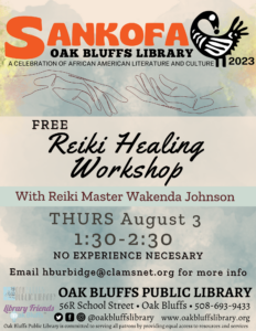 SANKOFA SPECIAL MUSIC PERFORMANCE Thursday, August 3 6:00 – 7:00pm Each Thursday from 6:00-7:00 join us on the Library’s South Lawn for live, local music. Bring your beach chairs, blankets, snacks and lay out on the grass while you listen to tunes. Fun for all ages. Enjoy artists such as Delanie Pickering, Johnny Hoy, Jaywalkers, Sam Rothberg, Darby Patterson, Blue Yonder and many more! This event series is kindly funded by the Library Friends of Oak Bluffs. |